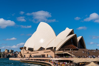 호주하면 가장 먼저 떠오르는 랜드마크 오페라하우스는 요트의 돛과 조개껍데기를 모티브로한 우아한 외관이 세계 3대 미항 시드니의 전경과 어우러져 감탄을 자아낸다.
