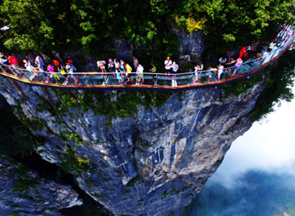 천문산 정상에 위치한 천문산사 관광과 더불어, 천문산사로 가는 길인 귀곡잔도는 모든 관광객에게 잊지못할 아찔함과 절벽을 걷는 듯한 느낌으로 장가계 최고의 옵션중 하나 입니다. 또한 유리잔도는 절벽 위에 70M가 되는 유리로 길을 만들어 놓은 곳으로, 아래를 내려다 보면 하늘과 땅 사이에 서있는 듯한 짜릿한 기분이 듭니다.